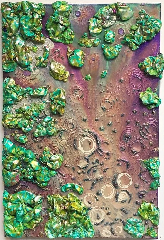 Crystal of FishScale Creations creates mixed media artworks utilizing resins with various inclusions, wire, and found objects. By emphasizing aesthetics, Crystal touches on various overlapping themes and strategies.
