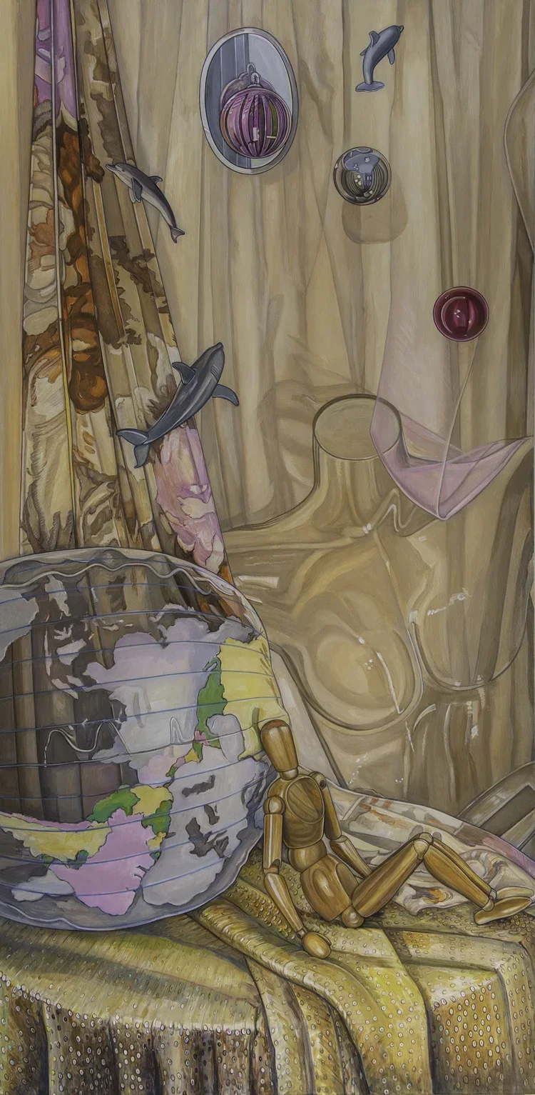 Karen Khan is currently working on a Reflection Series of drawings and paintings that explore expanding the thinking of Contemporary Realism. She juxtaposes every day objects abstractly into compositions.