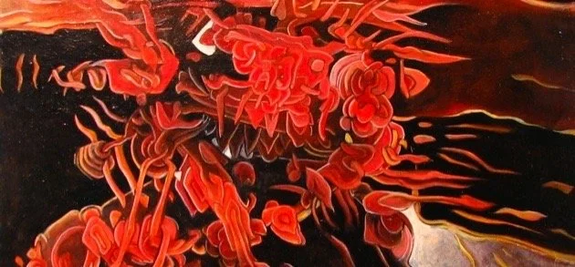 His paintings are an amalgam of styles derived from the history of visual arts and organic and mechanical forms. The titles of his paintings are mostly chosen at random because he does not wish to tell the viewer what he or she should experience.
