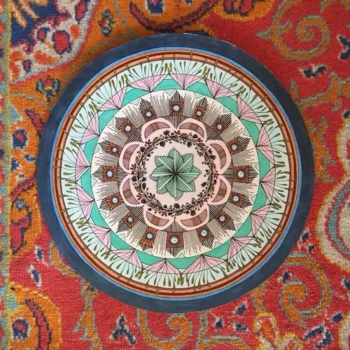 Zoe Doucette is a full-time artist living in the Berkshires with her husband and their two sons. Her artwork consists mainly of mandalas focusing on repeating patterns as a form of meditation.